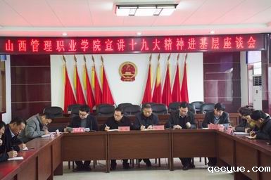 座谈会上,宣讲团分别与尉庄乡和关王庙乡的党员干部以及村党支部书记等进行交流,宣传十九大关于振兴乡村经济、脱贫攻坚的战略部署、政策方针,了解基层学习宣传贯彻十九大精神的情况,了解脱贫攻坚的做法举措、疑难困惑,共同探寻解决问题新路径、新办法。宋沧表示,扶贫更要扶志扶智,学院将充分利用发挥专业特色和教育优势,在农村劳动力转移的教育培训、产品的市场推广营销、信息技术教育等方面,给予帮助扶持,在扶贫攻坚战中作出应有的贡献。亲切的座谈中,基层工作的繁杂艰辛和其中的酸甜苦辣使大家感同身受,脱贫攻坚一线党员干部的饱满的精神状态、昂扬的斗志、务实的工作作风、乐观的生活态度深深感染打动着每一个人。大家纷纷表示,在党的十九大精神的指引下,在以习近平同志为核心的党中央的坚强领导下,伟大的中华儿女,必将以坚定的意志和必胜的信念,彻底打赢这场举世瞩目的脱贫攻坚战。