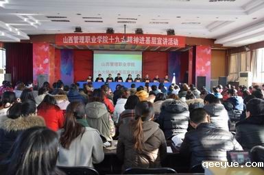 在襄汾职业教育中心、邓庄职业中学等地,思政部负责人解晓军宣讲党的十九大精神。他从新时代、新思想、新目标、新征程四个方面,结合实际,对党的十九大精神进行了全面系统深入的讲解。讲座内容丰富,全面深刻,充满感召力和亲和力,赢得了现场师生的阵阵掌声。