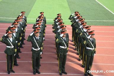 上午9时30分,在全场注目下,国旗护卫班护卫着国旗入场,伴随着雄壮的国歌声,五星红旗冉冉升起,拉开了军训汇报表演的序幕。首先是分列式表演,在军训教官的指挥下,各方队喊着嘹亮的口号,迈着整齐的步伐向主席台走来,他们昂首挺胸,摆臂有力,精神饱满,声势震天,展示了丰硕的训练成果。随后进行的是会操表演。各队列方阵,听到口令后反应迅速,动作敏捷准确;国旗班方阵精神抖擞,动作整齐划一,显示出同学们良好的综合素质和奋发向上的精神风貌;特别是由700多名学生组成的大型军体拳表演方阵,动作英武刚劲,气势如虹,充分展现了2017级新同学斗志昂扬的精神状态。各方队独具特色,同学们军姿豪迈,军容严整,演绎出别样的青春风采。