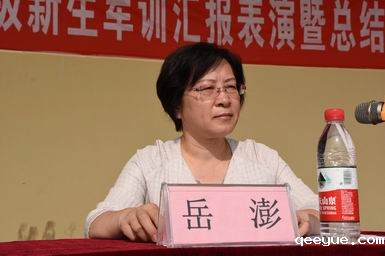 汇报表演结束后,在总结表彰大会上,岳澎代表学院向为军训工作付出辛勤汗水的教官、老师表示崇高的敬意和衷心地感谢,对十几天军训取得的成绩给予充分肯定。她希望同学们要转换角色,合理定位,珍惜大学的美好时光,运用大学的一切教育资源,合理利用时间,不断充实自己,努力将自己塑造成为合格的大学生;要注重学习,踏实做人,保持强烈的求知欲和进取心,努力学习理论知识和专业技能,及早做好个人职业发展规划,本着对人生负责的态度,不断提升自我境界,实现职业理想和人生理想;要担负责任,甘于奉献,将自己的人生价值融合到中国特色社会主义事业各项建设中,从而使自己的生命绽放绚丽的色彩。