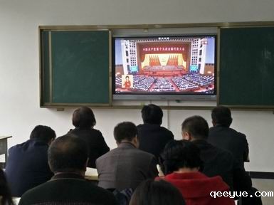 上午9点,院领导贾二元、岳澎、马联合、李强、郭敬仁、宋沧,和全院90多名党员,在综合楼403教室一同观看了十九大开幕式直播。大家怀着无比激动的心情,聚精会神,认真聆听,边收看边记录,不时为习近平总书记的报告所打动、所鼓舞,掌声阵阵。
