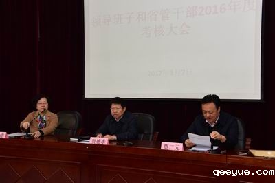 3月7日上午,我院2016年度领导班子和省管干部考核大会在实训楼四层报告厅召开。省人社厅考核组组长、副厅长贺德孝等一行6人出席会议。大会由院党委书记贾二元主持。