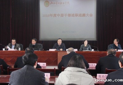 1月8日,学院2016年度中层干部述职述廉大会在实训楼报告厅召开。院党委书记贾二元,副院长马联合、闫建辉出席会议,院长岳澎主持。全体教职员工参加大会。