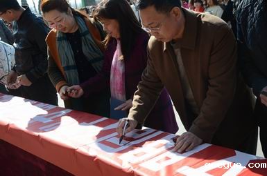 学生处副处长张文斌,在主持仪式中,对活动进行了详细安排。班主任老师和广大学生在横幅上郑重签上了自己的名字,表达了“与文明同行”的决心。