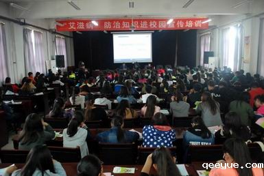培训中,刘蓉讲解了近年来我国艾滋病发病情况,以及临汾市在预防控制艾滋病方面所作的工作。她就艾滋病的致病原理、发病状况、传播途径、防治措施等相关知识向大家进行了详细的介绍,使同学们消除了对艾滋病的恐惧心理,对生活中如何预防艾滋病等问题有了全面、科学的认识,真正认识到预防艾滋病的紧迫性和文明、健康有序生活方式的重要性。