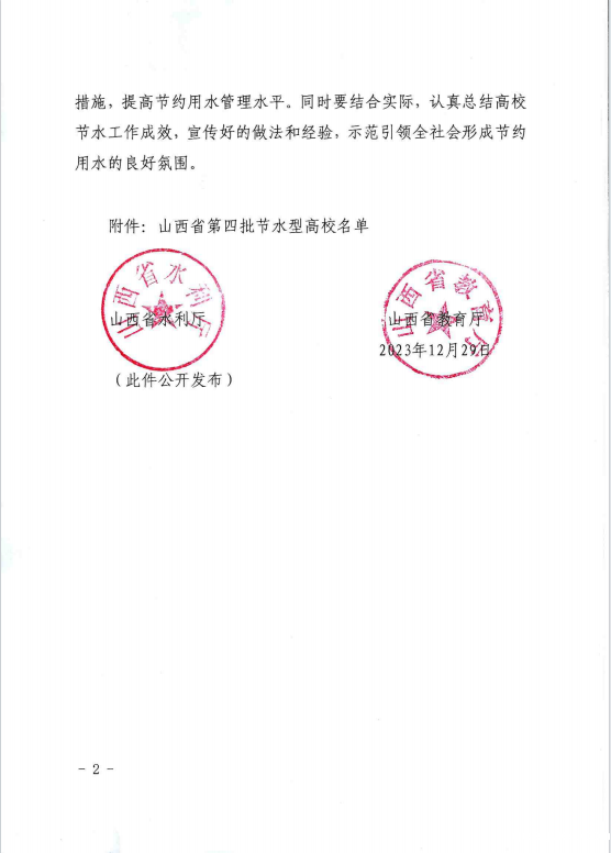 日前,我院经山西省机关事务管理局联合山西省水利厅、山西省住建厅验收评审,确定为“节水型单位”。经教育厅推荐,山西省水利厅、山西省教育厅联合专家审核,确定为“节水型高校”。