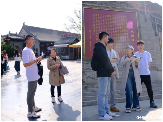 其次,同学们按照参观游览顺序进行分组模拟讲解,将《导游业务》书上的带团流程和讲解技能等知识融入讲解实践中,精彩的讲解吸引了众多游客跟随。最后,专业课教师组织学生们进行互评和总结。