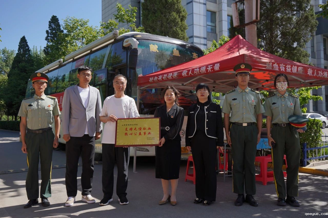 活动期间,临汾市中心血站副站长孙亚琴向我院赠送了“支持无偿献血,热心公益事业”牌匾,向学院和所有参与无偿献血的师生表示感谢和敬意。