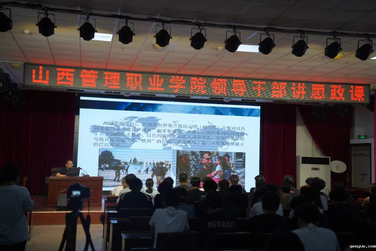 6月13日下午,院党委委员、副院长董刚在崇德楼三楼报告厅,以《巴以冲突与中国原则立场》为题为管理与服务系学生作形势与政策专题讲座。