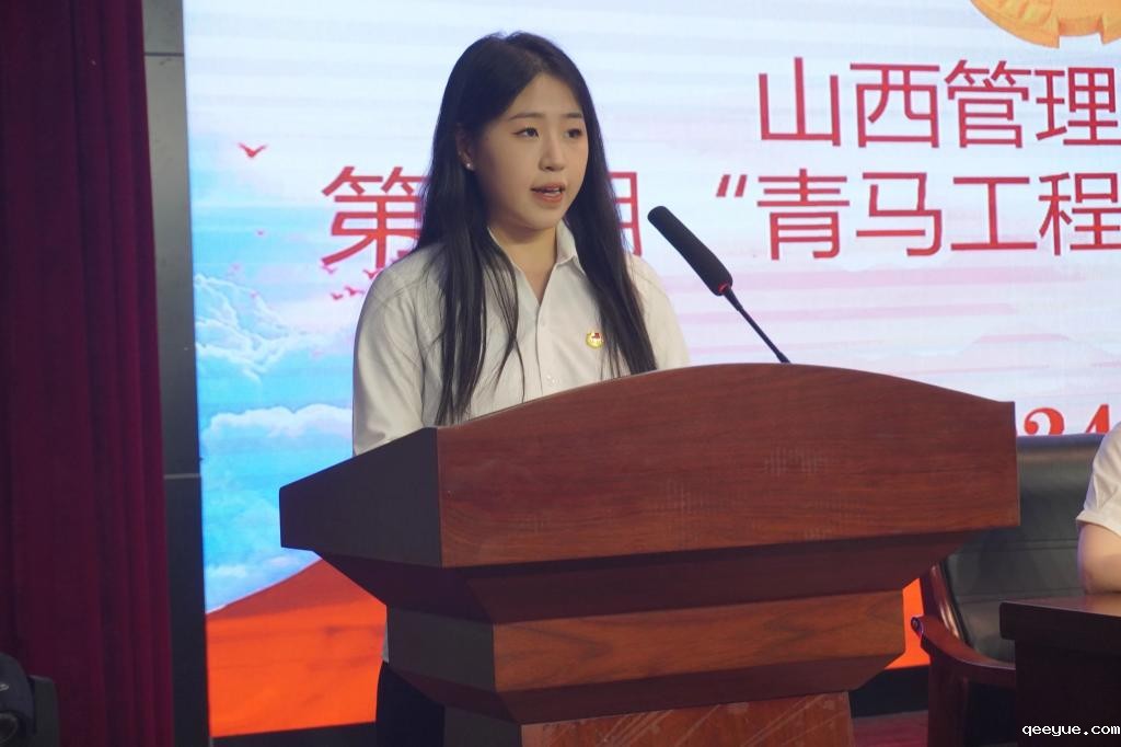 “青马班”班长高乐妍作为本次培训班优秀学员代表发言。她分享了在“青马班”的学习体会和美好收获,并表示在未来的日子里,将继续传递青马精神,影响和带动身边的青年朋友,共同坚定理想信念,积极进取,奋发有为,努力成长为有理想、敢担当、能吃苦、肯奋斗的新时代好青年,为实现中华民族伟大复兴的中国梦贡献自己的青春力量。