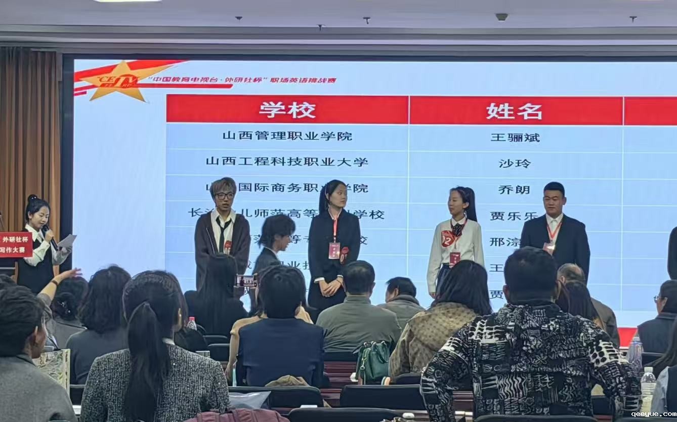 11月3日,我院学生在2024“中国教育电视台·外研社杯”职场英语挑战赛山西赛区省赛中获得一等奖1项、三等奖1项的好成绩。获得一等奖的是财贸系23级会计信息管理一班王骊斌,获得三等奖的是计算机技术系23级数字媒体技术四班殷煜。指导教师均为田清华。