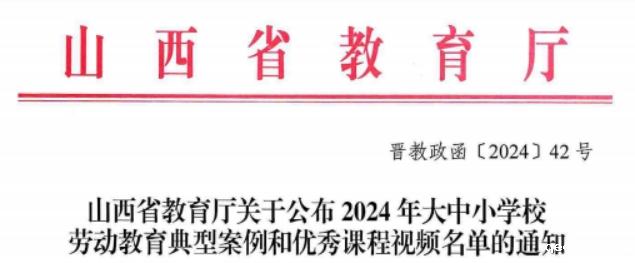 11月4日,山西省教育厅发布《山西省教育厅关于公布2024年大中小学校劳动教育典型案例和优秀课程视频名单的通知》,我院劳动教育课程视频入围此次劳动教育优秀课程视频名单。
