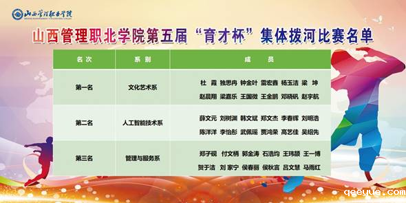 本次“育才杯”院级比赛共有四项,分别是:跳绳、拔河、11人制足球赛、以“青年展风采 接力爱国情”为主题的纪念新中国成立75周年线上校园快乐跑,其中拔河比赛分男子、女子、男女混合共3项;跳绳比赛分男女单人、双人、集体共11项。四项赛事共产生集体奖9个、个人奖和多人奖211个、优秀运动员2名、优秀裁判员23名、优秀工作人员8名。