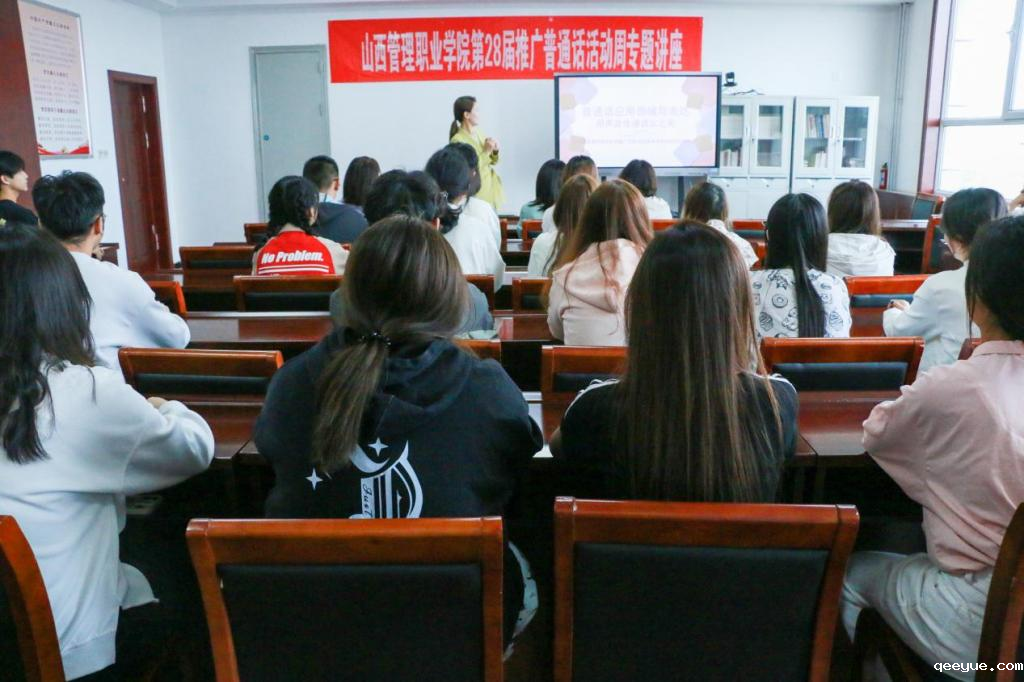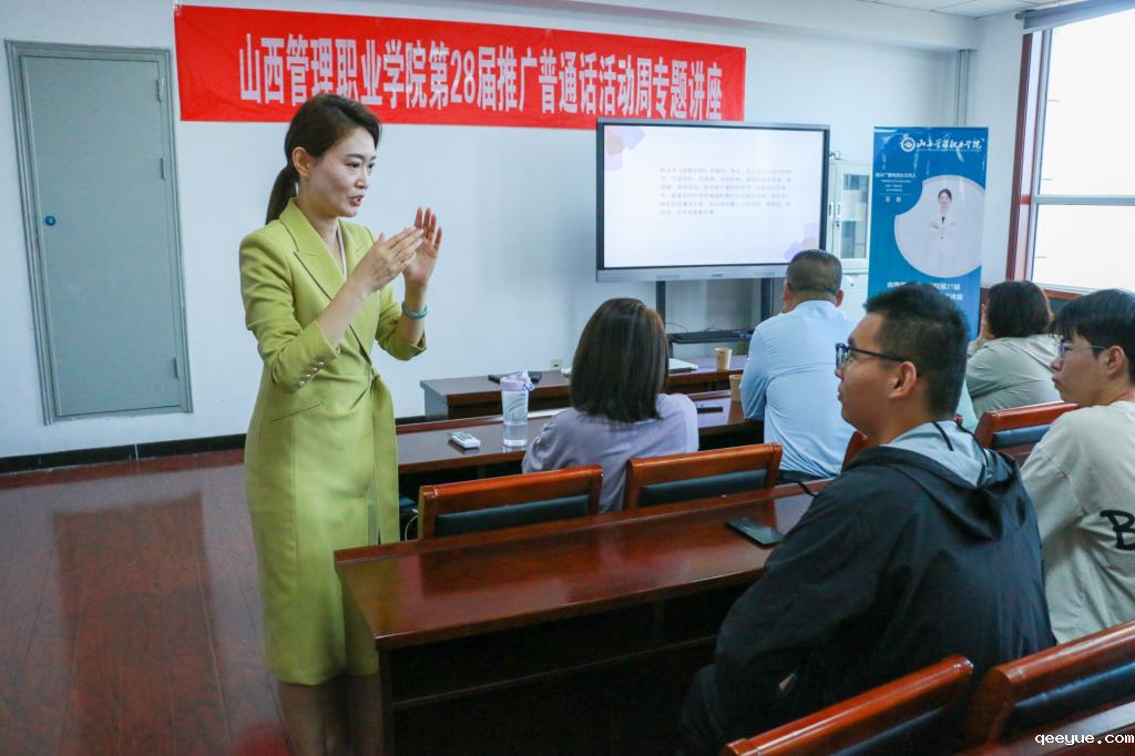 9月19日下午,为扎实开展好我院第28届推普周活动,引导全院师生持续增强自觉规范使用国家通用语言文字的意识,大力弘扬中华优秀传统文化,树立高度的文化自觉与文化自信,教务教学部邀请临汾广播电视台专业主持人王彤,为我院广播站和演讲与口才协会及普通话爱好者和院语委办、普通话省测员等相关人员做专题讲座。教务教学部部长赵瑞婷和院团委书记李军峰出席。