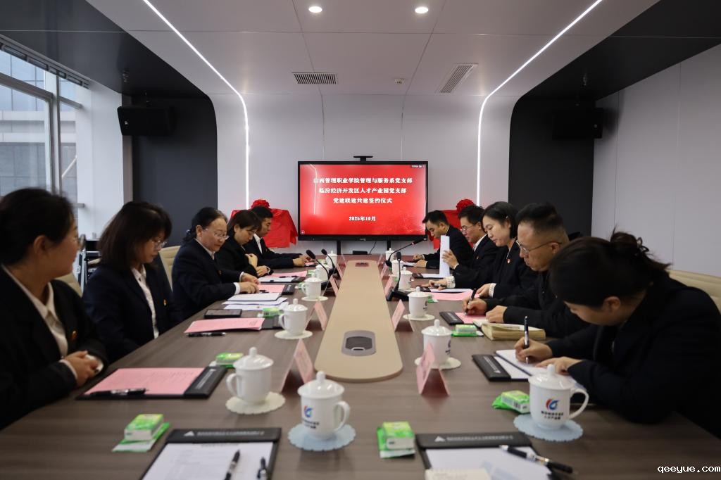 在全体参会人员的共同见证下,卫云芳主任郑重宣读协议书,双方代表共同签署《党支部联建共建协议书》,携手为“党建联建共建工作点”“管理与服务系人力资源管理专业人才培养基地”揭牌。红色牌匾缓缓揭开,不仅标志着双方迈入“实质共建”新阶段,更象征着高校“人才培育优势”与园区“产业实践优势”的深度融合,为基层党建与核心业务融合搭建起坚实平台。