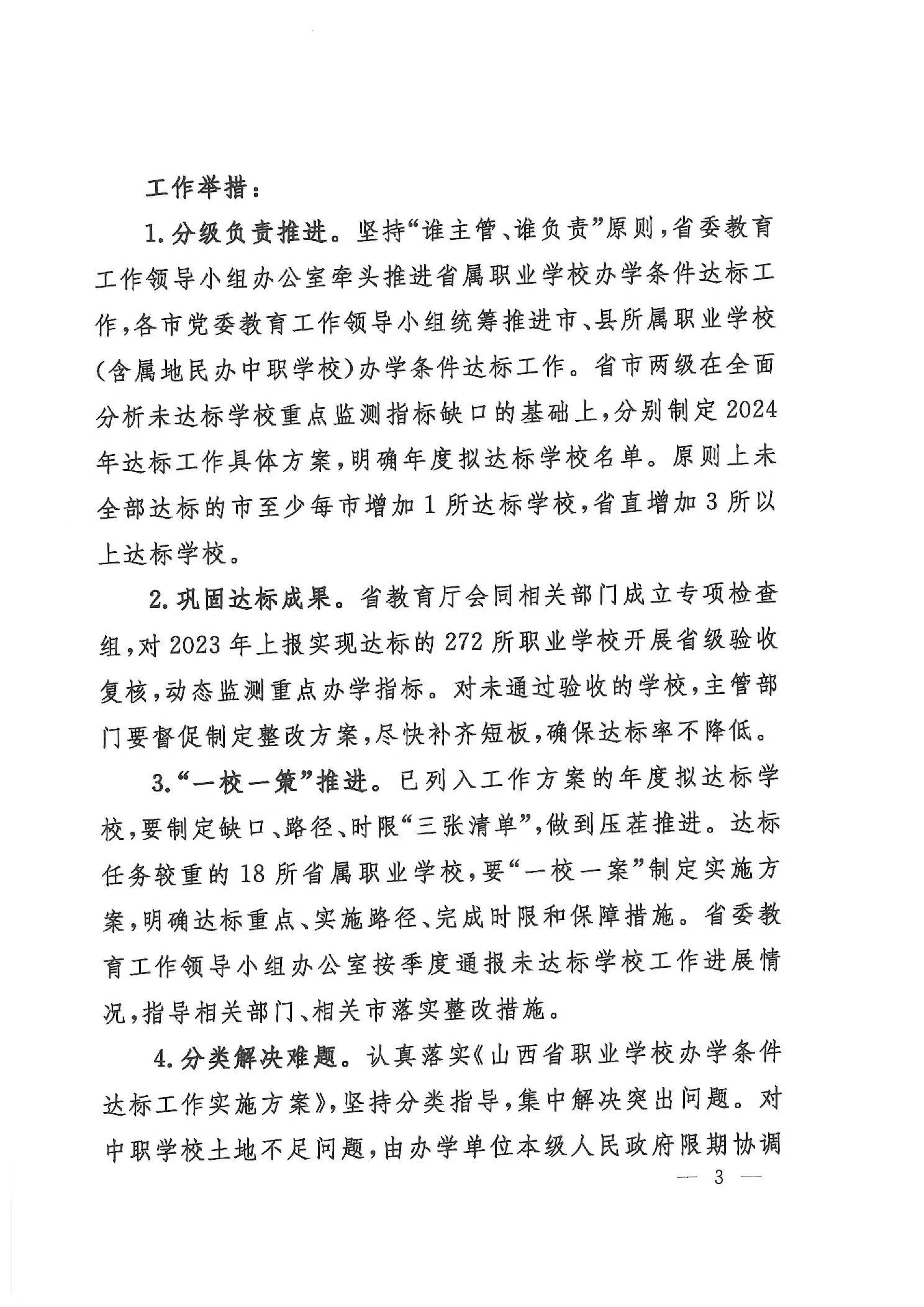 中共山西省委教育工作领导小组关于印发《山西省职业学校 2024年达标提质工作方案》的通知