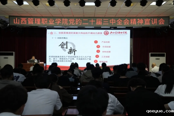 王爱国结合党的二十届三中全会精神学习体会,针对授课主题,从五个方面:一、回望过去,中国经济快速增长的奇迹背后的原因是什么?二、立足当下,全面创新体制机制背后的战略考量是什么?三、面向未来,关于教育、科技和人才的具体部署是什么?四、如何贯彻落实关于教育、科技和人才的具体部署;五、结合当前学院发展如何争做改革创新生力军,与在座师生进行深入交流。