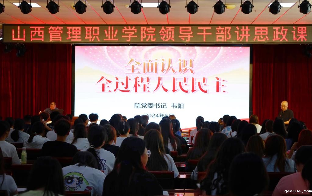 5月27日,院党委书记韦阳以《全面认识全过程人民民主》为题,在崇德楼三楼报告厅为学生作形势与政策专题讲座。