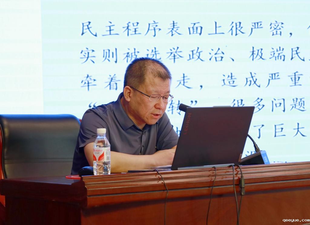 韦阳从全过程人民民主提出的过程与背景、科学内涵和主要特点、全过程人民民主的理论逻辑、全过程人民民主的优势、如何践行全过程人民民主五个方面全面解读了全过程人民民主。他指出,人民民主是社会主义的生命,是全面建设社会主义现代化国家的应有之义。全过程人民民主充分彰显社会主义国家性质,充分彰显人民主体地位,使人民意志得到更好体现、人民权益得到更好保障、人民创造活力进一步激发。